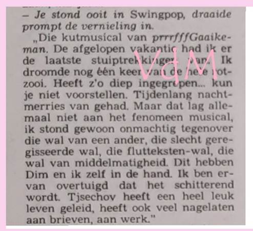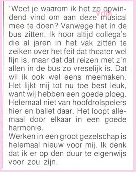 geprezen werd om het neerzetten van een oorspronkelijke Nederlandse musical (in
