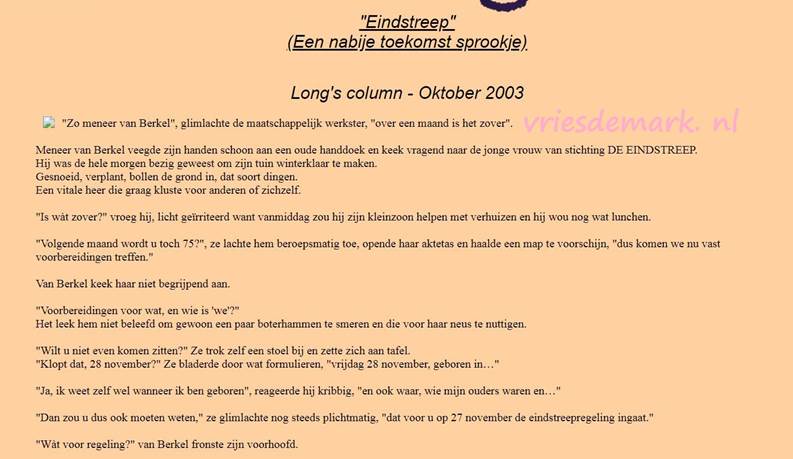 Eindstreep, een nabije toekomst sprookje – oktober 2003